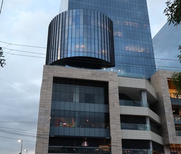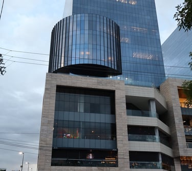 Infraestructura: 9 elevadores de alta velocidad, accesos controlados y seguridad 24/7; área de restaurantes y entretenimiento y tiendas de autoservicio en el entorno.